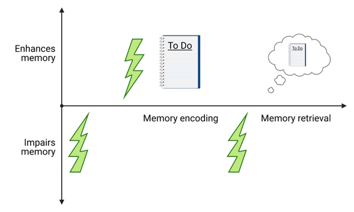 Okay, let’s dive in! The first thing to know about memory and stress is that timing matters. Being stressed when you are learning something and committing it to memory (called memory encoding) has a very different effect than being stressed when you are trying to remember something (called memory retrieval). These opposite effects likely come down to the different timing of the “waves” of the stress response in your body.