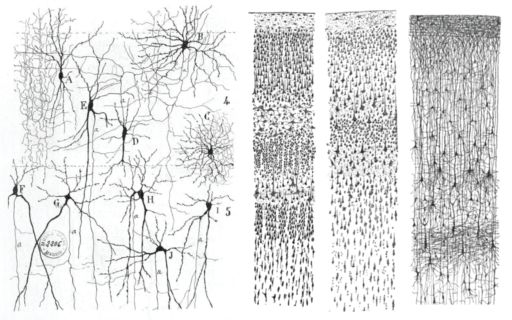 Figure 3: Images by Santiago Ramón y Cajal on Wikimedia Commons and Wikimedia Commons