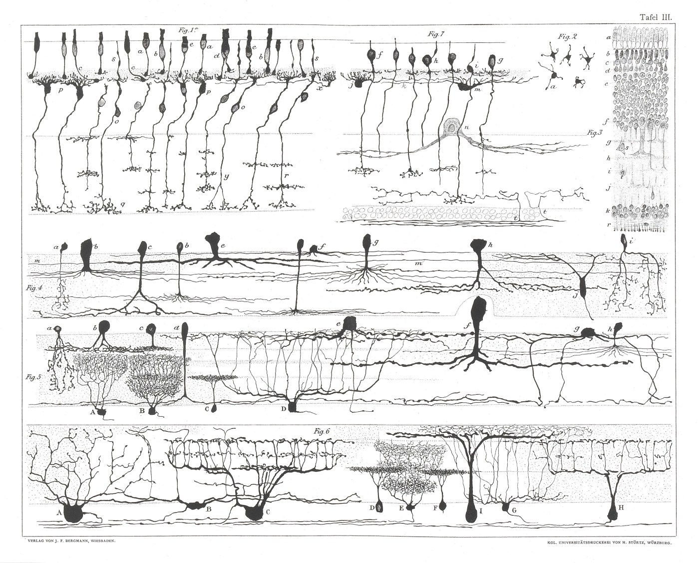 Figure 5: Adapted from image by Santiago Ramón y Cajal on Wikimedia Commons