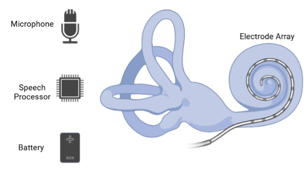 Scientists know a lot about how we transfer sound information to the brain (for a nice summary, see Greer’s post here!) but our hearing is not always guaranteed. Hearing loss is a common phenomenon experienced by approximately 1.5 billion people worldwide, of which 430 million require treatment1,2. While the treatment of hearing loss has a long history, the more recent development of the cochlear implant has had the most profound impact. Specifically, cochlear implants have proven enormously successful in restoring functional sound and speech perception to the majority of the 1 million patients who have been implanted as of 20223. In this post, we’ll take a deep dive into the inner workings of cochlear implants and how they restore hearing.