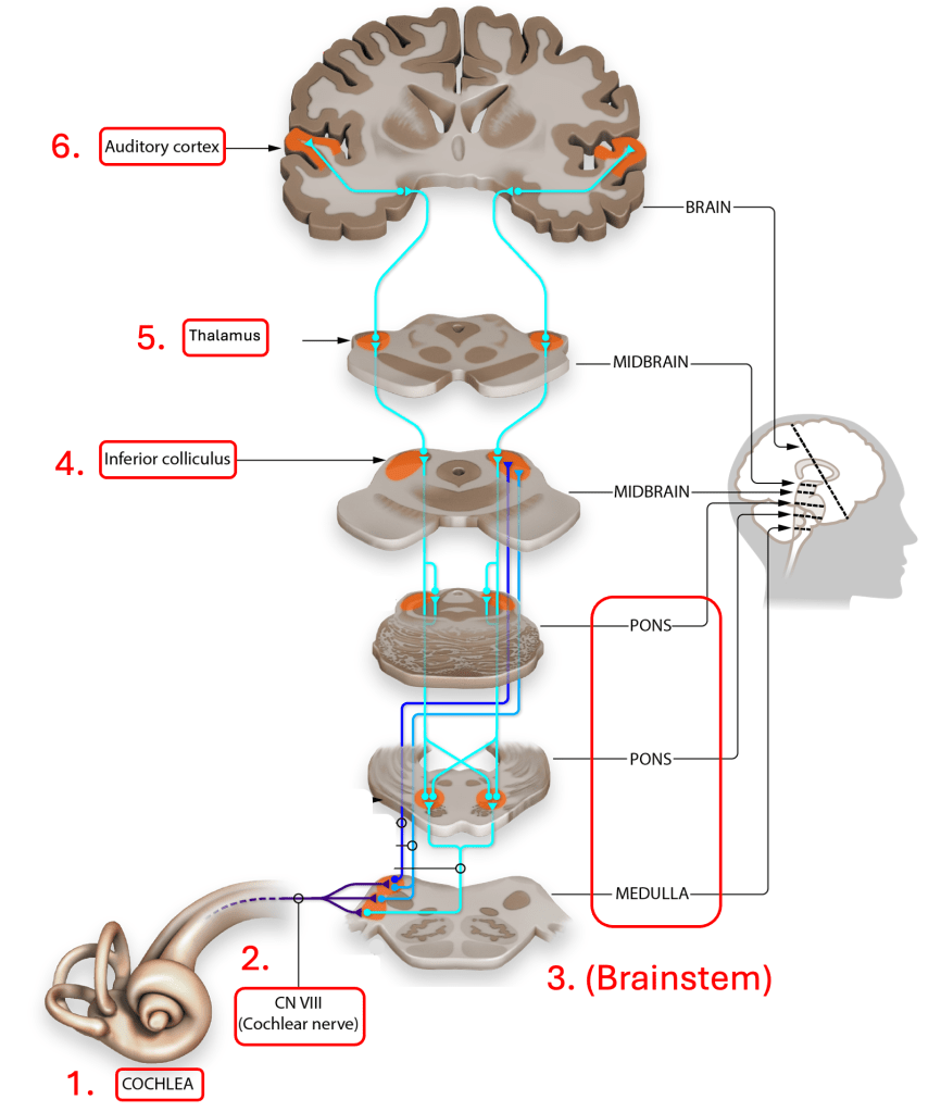 2. Pickles J. O. (2015). Auditory pathways: anatomy and physiology. Handbook of clinical neurology, 129, 3–25. https://doi.org/10.1016/B978-0-444-62630-1.00001-9